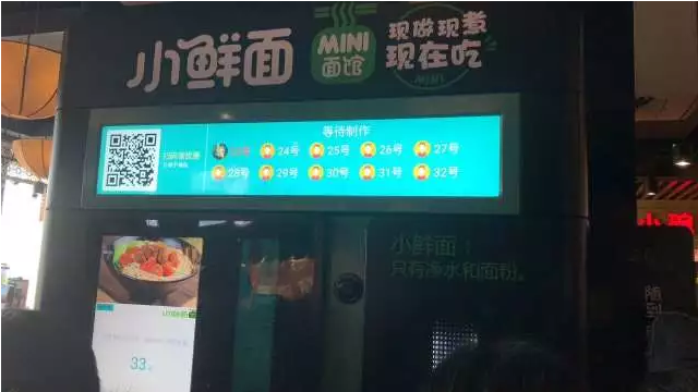 2、 水與面粉經科學配比,經機械物理工藝操作,形成定量面條。隨沸水煮制、冷焯后入碗,推送至出面口。用戶憑掃碼支付后的單據,按順序取餐及隨即配套的醬包罐頭、筷子產品。