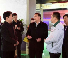 許昌市統戰部部長劉保新與襄城縣縣長李成一行來到河南萬杰智能科技股份有限公司檢查指導工作。萬杰智能董事長王曉杰熱情接待并匯報公司發展狀況。